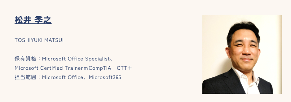 IPIの講師陣の中でも、Office研修を中心に、受講者との対話を大切にした指導で高い評価を得ている松井講師。